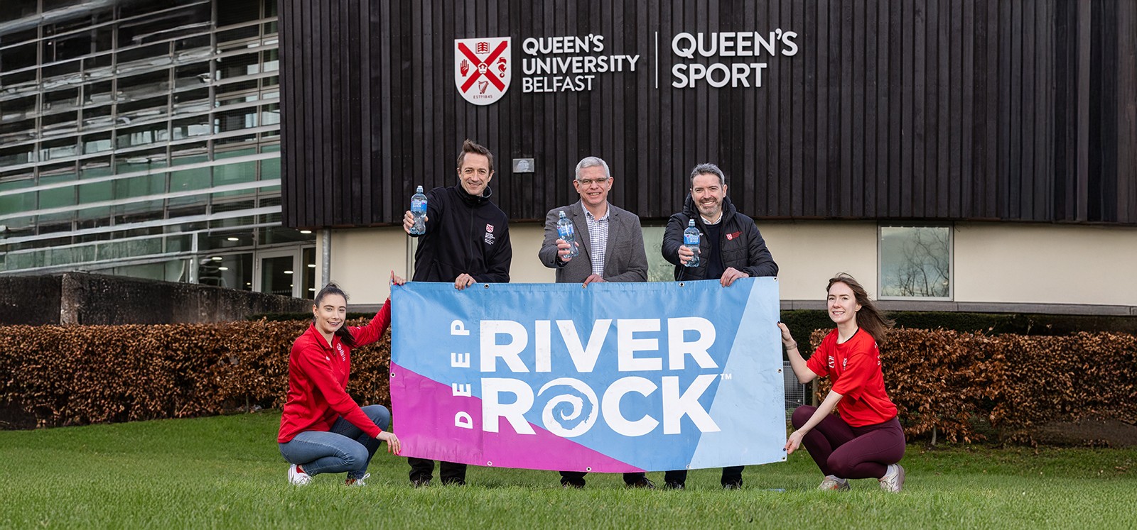 L-R – Teresa Reid Participation Sport Development Officer , Conor Curran Head of Diversity, Inclusion & Staff Wellbeing, Conor McCready Deep Riverrock, Karl Oakes Head of Sport and Physical Wellbeing and Queen's Athlete Beth Saunders at the 2026 5k launch