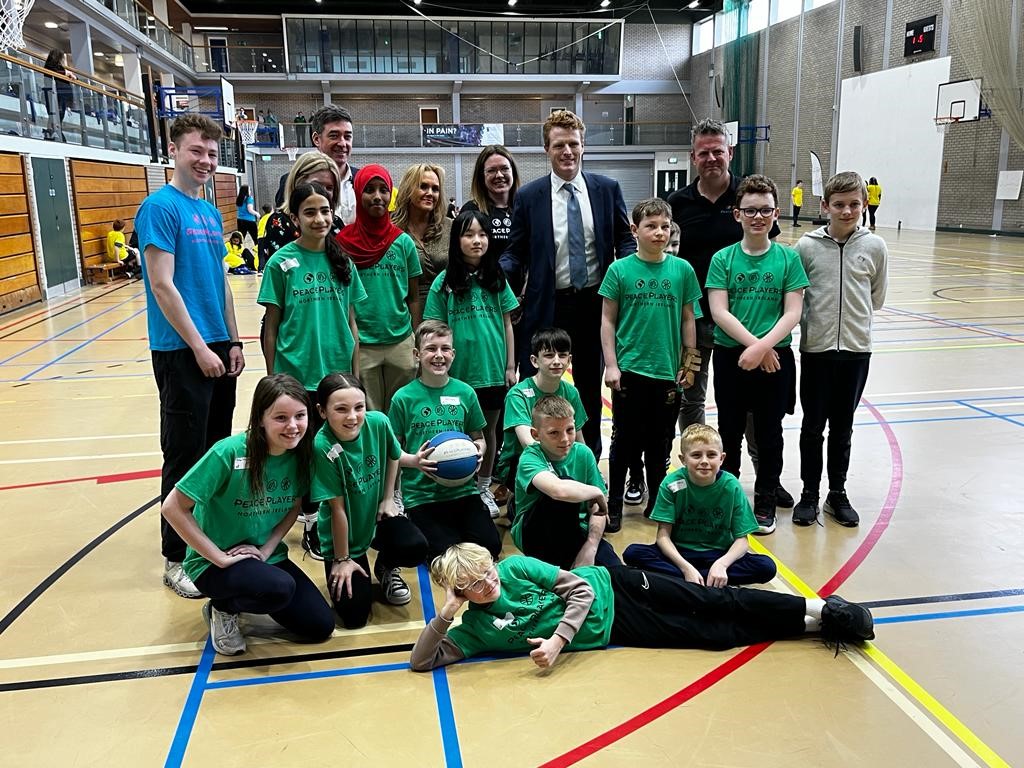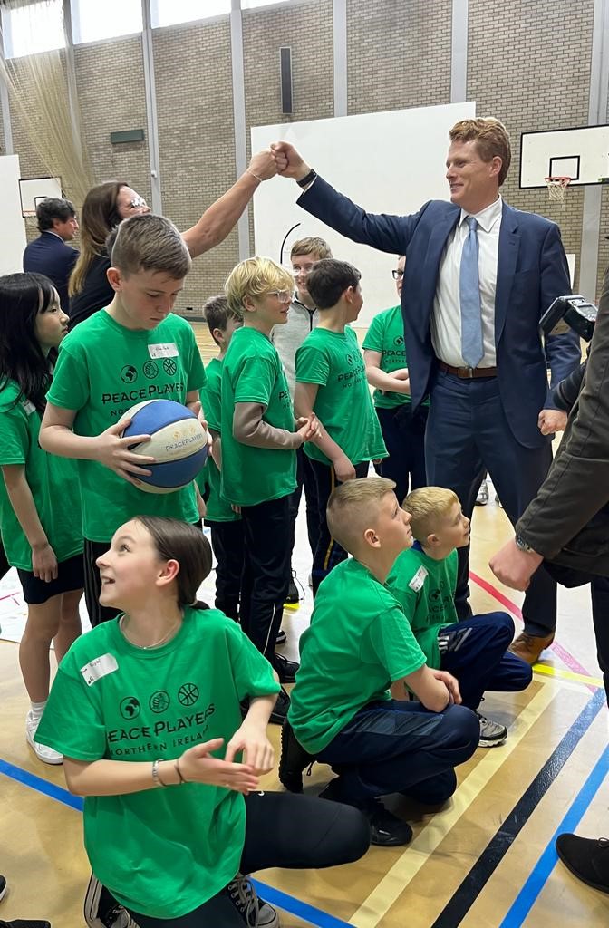 Senator Joe Kennedy (US economic envoy to NI), Jane Hartley (US ambassador to the UK), Tanaiste Michéal Martin and Chris Heaton-Harris (NI Secretary of State) took some time out to visit a Peace Players NI cross - community basketball being held at the PEC. During their visit the delegates took some time out to meet the children and organisers of the event as well as some members and staff at the PEC.