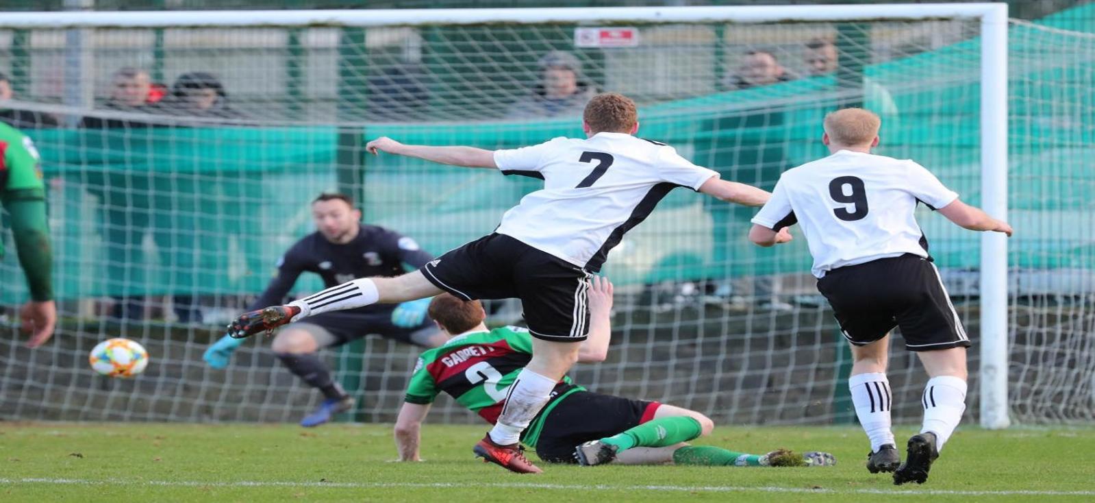 McDaid got his second of the game 5 minutes before half time however Queen's immediately replied through Matthew Hughes, beating two players on the edge of the box and finding the bottom corner, meaning the sides went in all square.